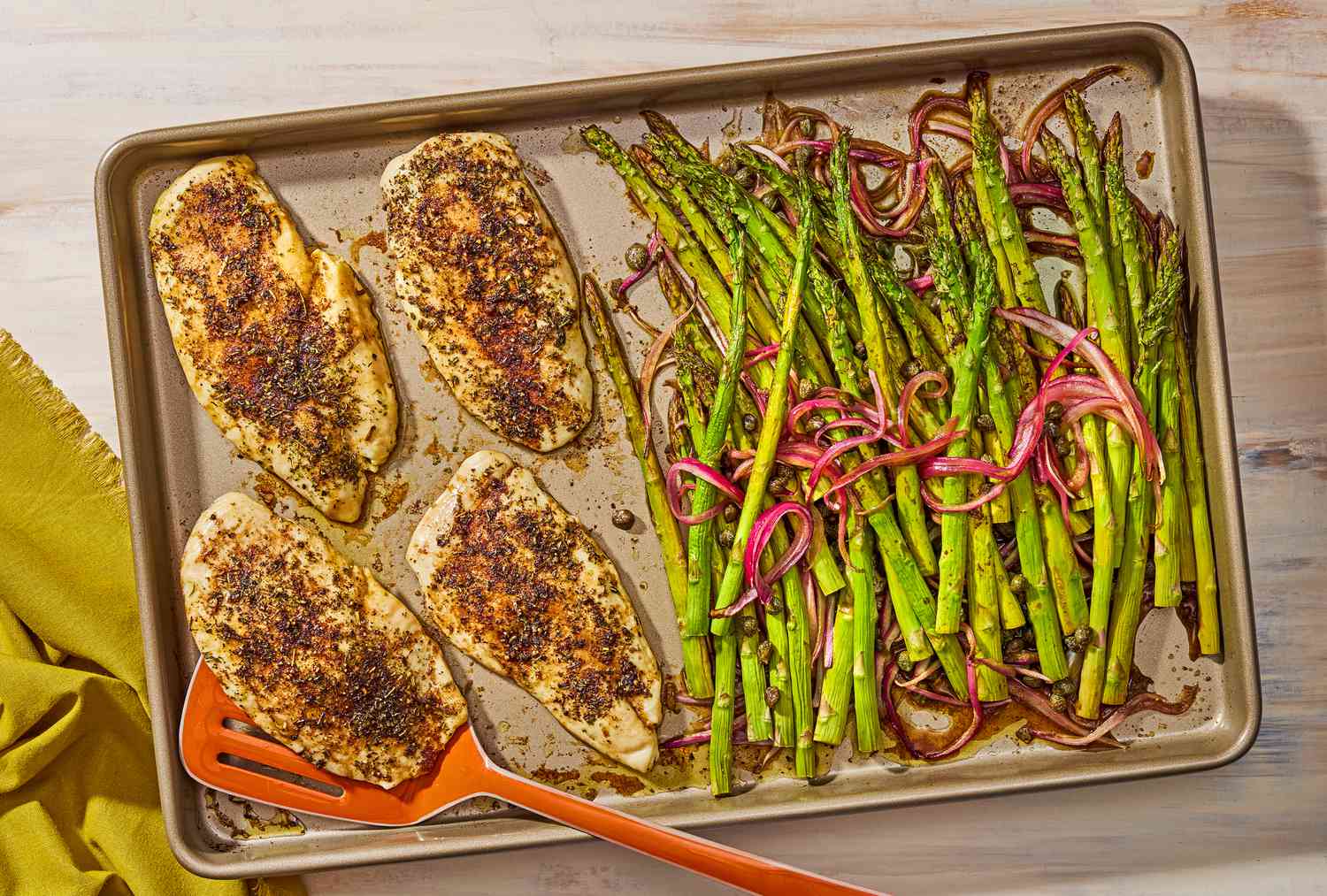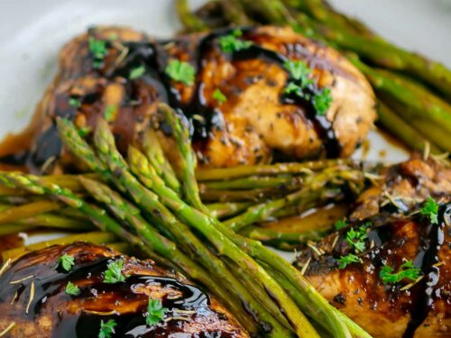 10. Курица в бальзамическом соусе со спаржей на одной сковороде
