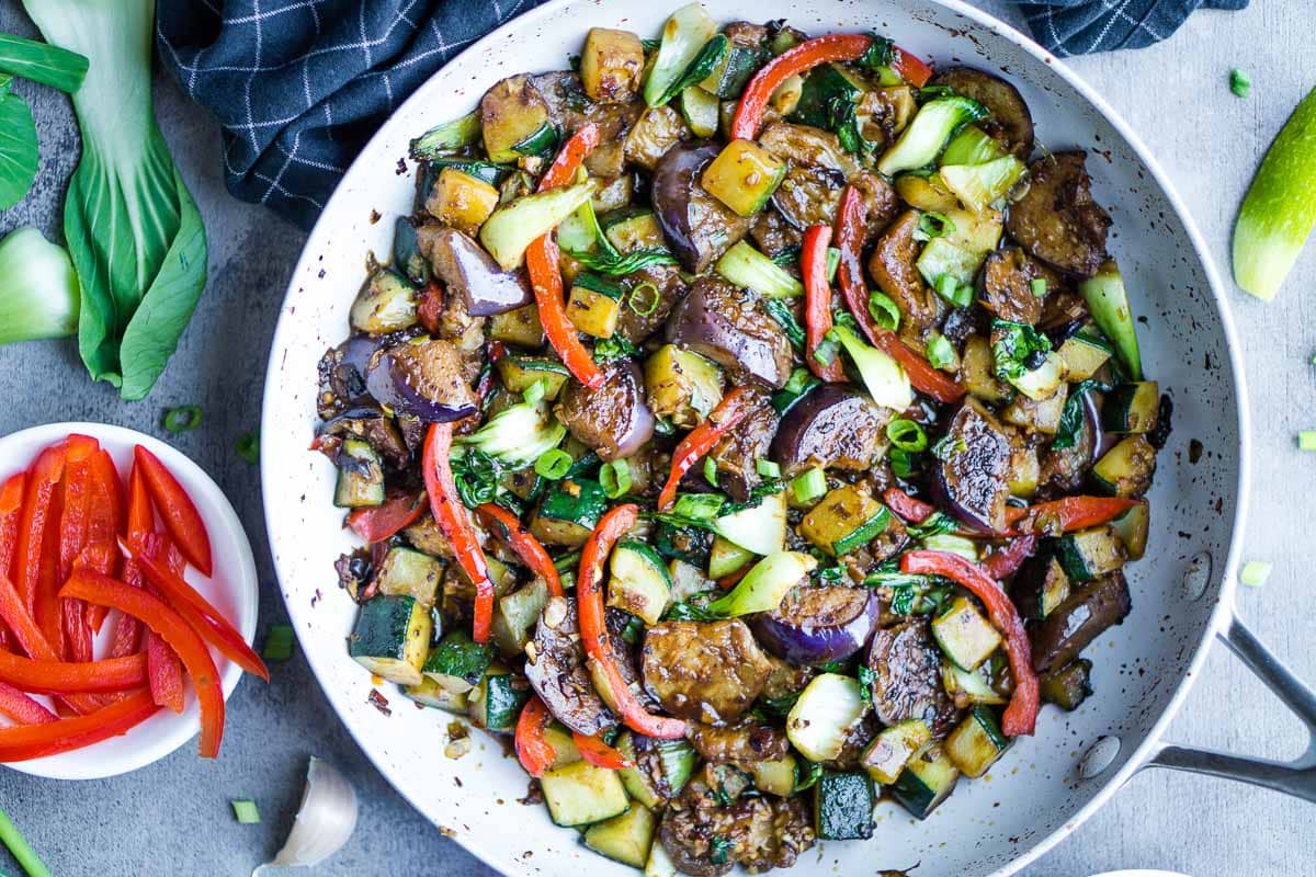 3. Овощное рагу с фасолью и шпинатом на сковороде