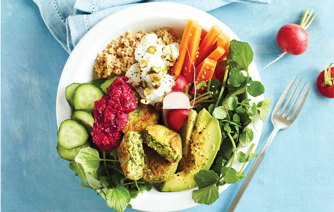 6. Фалафель-боул с хумусом, овощами и зеленью
